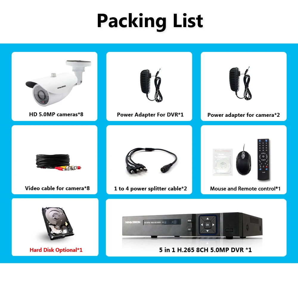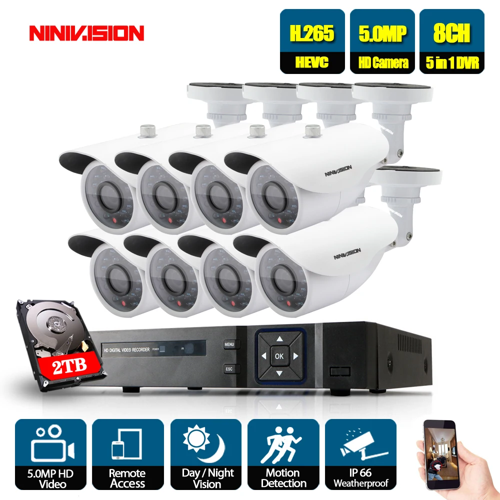8CH 5MP HD CCTV Camera System AHD DVR Kit 8PCS 5MP IR Night Outdoor Security Camera P2P Video Surve